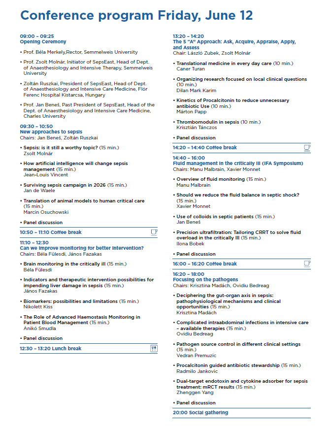 We are honored to invite you to the 6th Conference of the Central-Eastern European Sepsis Forum, scheduled to take place in Budapest, Hungary, from 12–13 June, 2026.